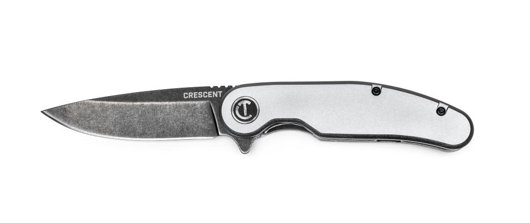 The Crescent CPK325A has a heavy-duty D2 steel drop point blade with a combination of cutting performance, blade strength, easy maintenance, and overall durability that makes it the perfect Every Day Carry. Its gray wash blade finish resists corrosion and provides a striking contrast to its natural anodized aluminum handle, which, in addition to its outstanding strength-to-weight ratio, is ergonomically designed to optimize hand and finger contact points for enhanced fit and superior control. Precision ball-bearing flipper action provides smooth blade deployment, while a full metal core and liner lock design assures secure locking of the blade in the open position and easy closing. A deep pocket carry clip keeps the CPK325A well concealed, yet always accessible.