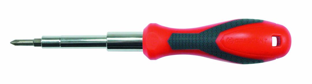 The Crescent 7-in1 interchangeable bit screwdriver includes multiple sized Nut, Slotted, and Phillips® drivers, all in one tool. The driver also features a dual material handle for comfort and durability while fastening.