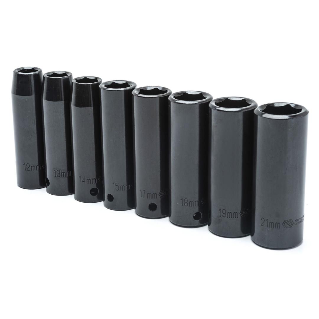 8 Piece 1/2" Drive 6 Point Deep Impact Metric Socket Set