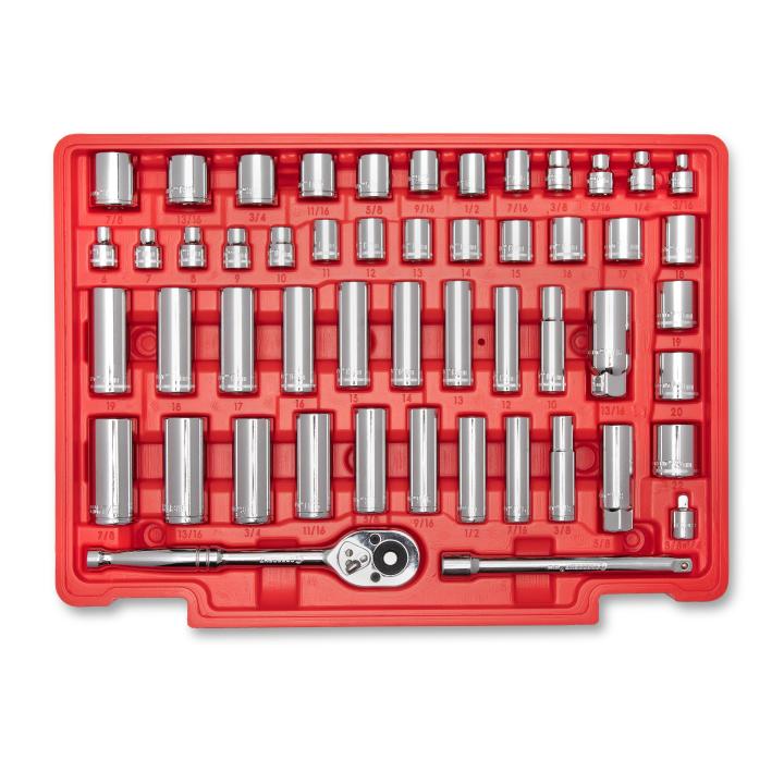 The Crescent CTK192 192 piece ¼”, 3/8”, 1/2” Drive Sizes SAE/Metric Mechanics Hand Tool Set contains a carefully selected assortment of hand tools needed for most industrial, mechanical and consumer applications. The set includes (3) 72 tooth quick release ratchets, allowing for rapid socket exchanges, a rachet gear that turns fasteners with a precision 5° swing arc and teardrop low profile head for improved access. Sockets in this set include come in Metric and SAE sizes all in 6 Point style covering the full range of most common fasteners in shallow and deep socket sizes. Access even more fasteners with the range of bit sockets included in the set covering Torx® & Hex common sizes and a full range of Hex Keys coming in Long-Arm and Short-Arm styles to provide access to more hard-to-reach fasteners. This set comes packed in heavy duty durable blow molded case provide organization and protection for the set in even the most extreme settings.