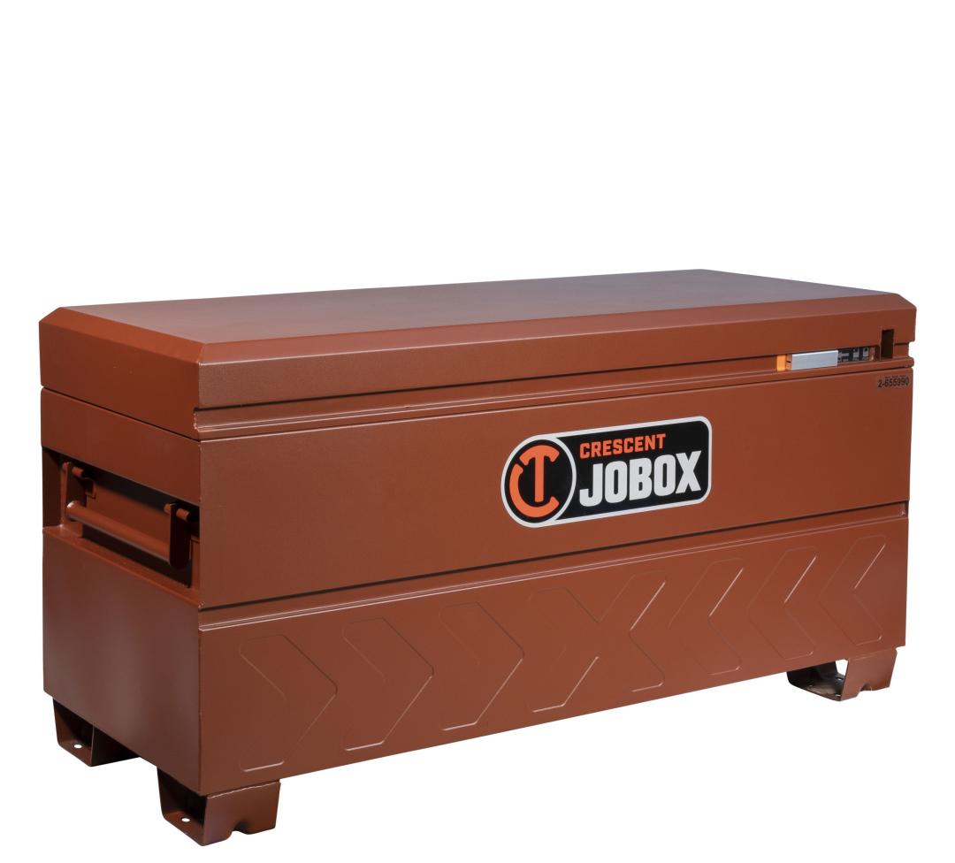 Crescent JOBOX is the leader in on-site storage security, organization, and safety with its high-strength, chamfered lid, commercial gas springs* for lid control and its Site-Vault™ security system. 4-way EZ-Loader skid bolsters and slip-resistant textured powder paint help provide safety and handling ease (* On 48" and longer chests)