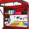 Your office away from the office, only much more organized, with loads of storage and world class durability. The office center provides an extra-large, lockable desktop with high visibility white interior and hanging pegs. Plenty of storage space including an easy access rear storage locker for longer tools and equipment.