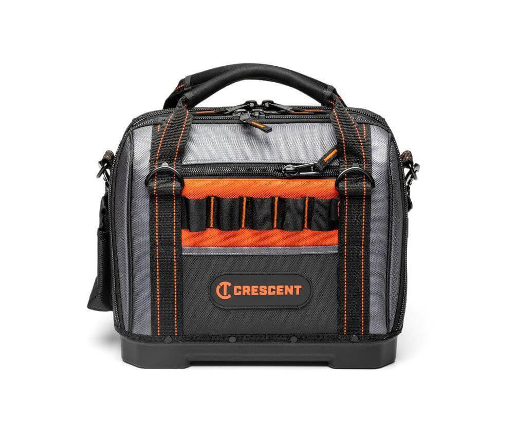 Introducing the Crescent tradesman closed tool bag. The newly designed sleeves hold the tools in place without losing small bits in the bottom of the pockets. The interior divide splits the bag into two sections to provide increased organization for identifying the right tools for the job. This bag features a hard polypropylene base that provides the durability you need to keep your tools safe and dry. Every zipper on this bag comes with a 3-year guarantee. These bags are built to take the abuse of everyday jobsite use.
