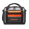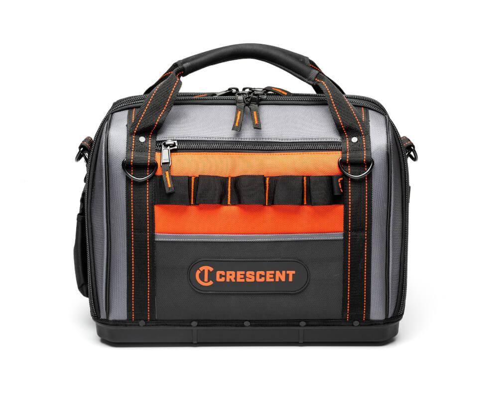 Introducing the Crescent tradesman closed tool bag. The newly designed sleeves hold the tools in place without losing small bits in the bottom of the pockets. The interior divide splits the bag into two sections to provide increased organization for identifying the right tools for the job. This bag features a hard polypropylene base that provides the durability you need to keep your tools safe and dry. Every zipper on this bag comes with a 3-year guarantee. These bags are built to take the abuse of everyday jobsite use.