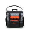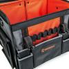 Introducing the Crescent tradesman rolling tool bag. The newly designed sleeves hold the tools in place without losing small bits in the bottom of the pockets. The interior features a bright orange to find your tools easily. This rolling bag features heavy duty treaded wheels. With a 200lb lid capacity, you can stack all your needed tools on top. These bags are built to take the abuse of everyday jobsite use.