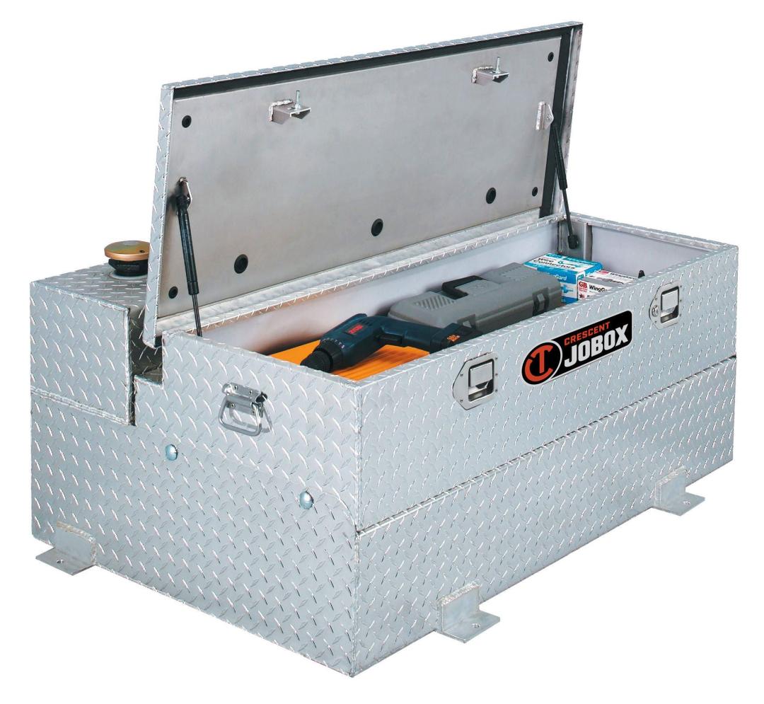 JOBOX Portable Chests are ideal for use in truck beds, on trailers, in workshops and in a variety of other locations. The Fuel-n-Tool model 433000 offers the convenience of a 74-gallon capacity transfer tank and 4.5 cubic feet of secure storage space in one unit. Combo Tank is made of rugged .125 Treadplate aluminum for long-term durability. All tanks are pressure tested for leaks.