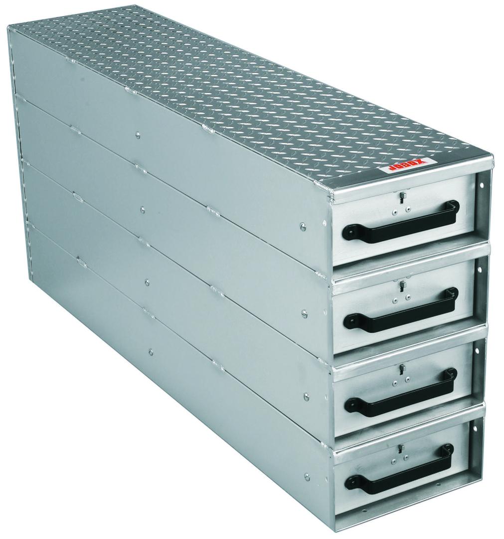 JOBOX Premium Aluminum Drawer Storage is perfect for use in service vans, minivans, SUV's or motor home basements. Removable dividers allow for segmenting small and large tools, supplies, or parts. Heavy-gauge aluminum is light enough for easy mobility and transport, and durable enough to stand up to heavy loads on top of, and in, drawers.