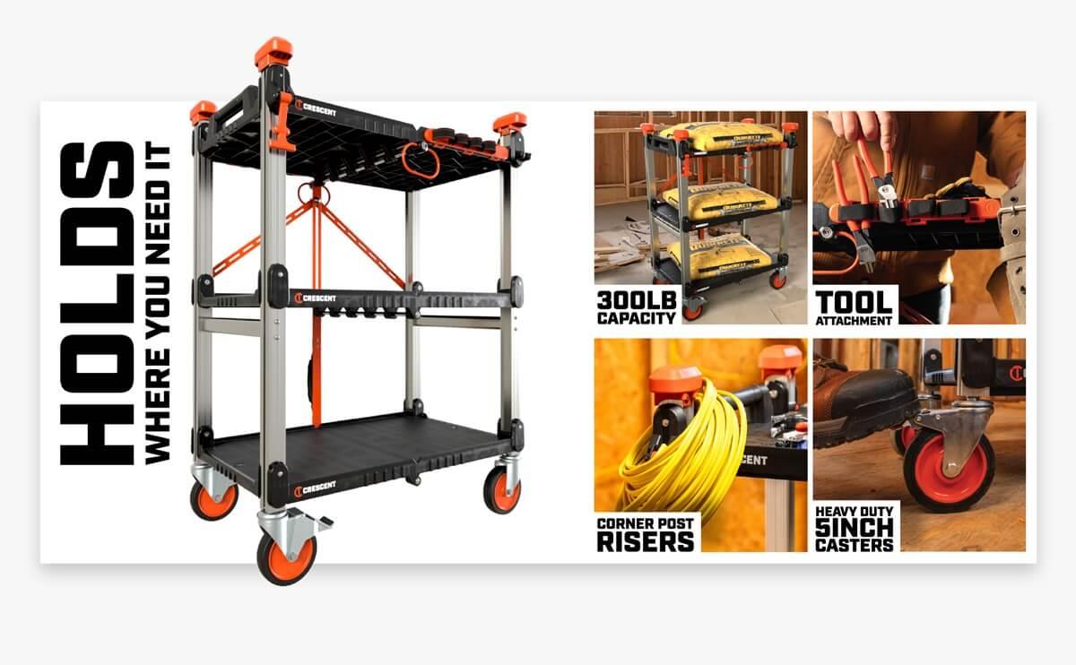 The Crescent SITERUNNER cart is designed for easy storage between jobs, freeing up valuable space in your packed truck. Compact when stored but expands in action to offer ample space for your essential tools and materials. Engineered for rugged worksites, this cart keeps up with the demands of busy jobs - so you can focus on getting the work done.
