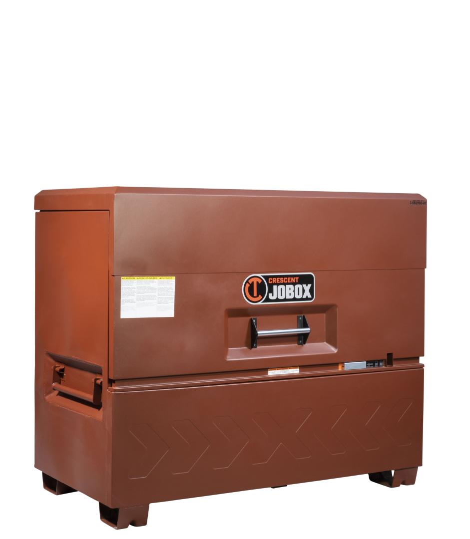 Crescent JOBOX is the leader in on-site storage security, organization, and safety with its high-strength, chamfered lid, commercial gas springs* for lid control and its Site-Vault™ security system. 4-way EZ-Loader skid bolsters and slip-resistant textured powder paint help provide safety and handling ease.