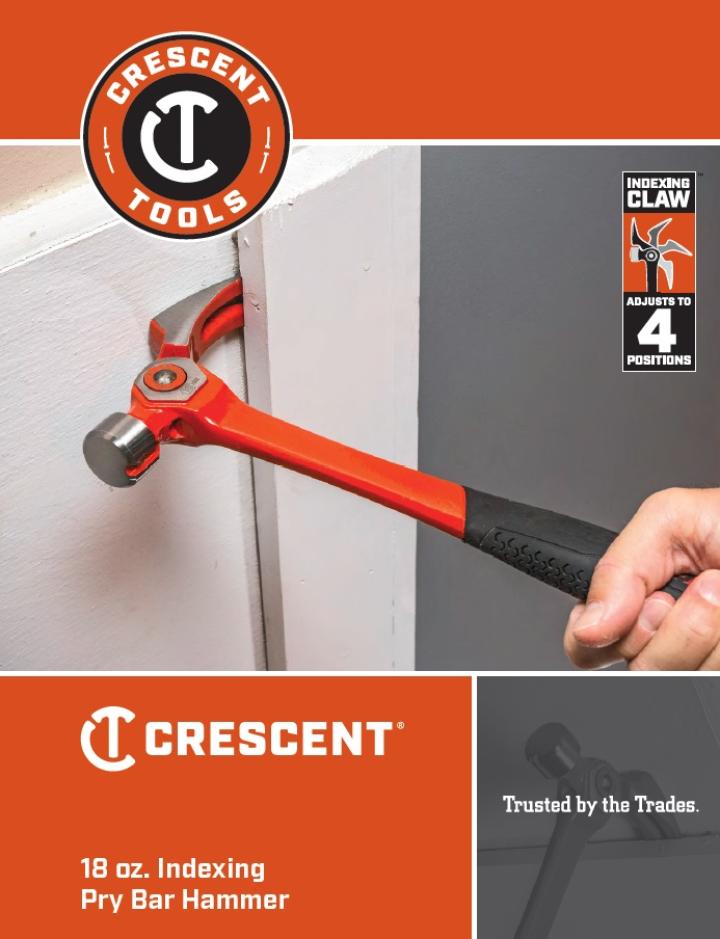 The Crescent 18 oz. Indexing Pry Bar Hammer combines the capabilities of an advanced design hammer with those of an indexing pry bar, delivering a uniquely effective construction/demolition tool. The hammer features a thermoplastic rubber (TPR) grip for outstanding comfort and a magnetic nail groove for one-handed nail starting. The four-position indexing claw adjusts to give the best position for maximum leverage and prying power
