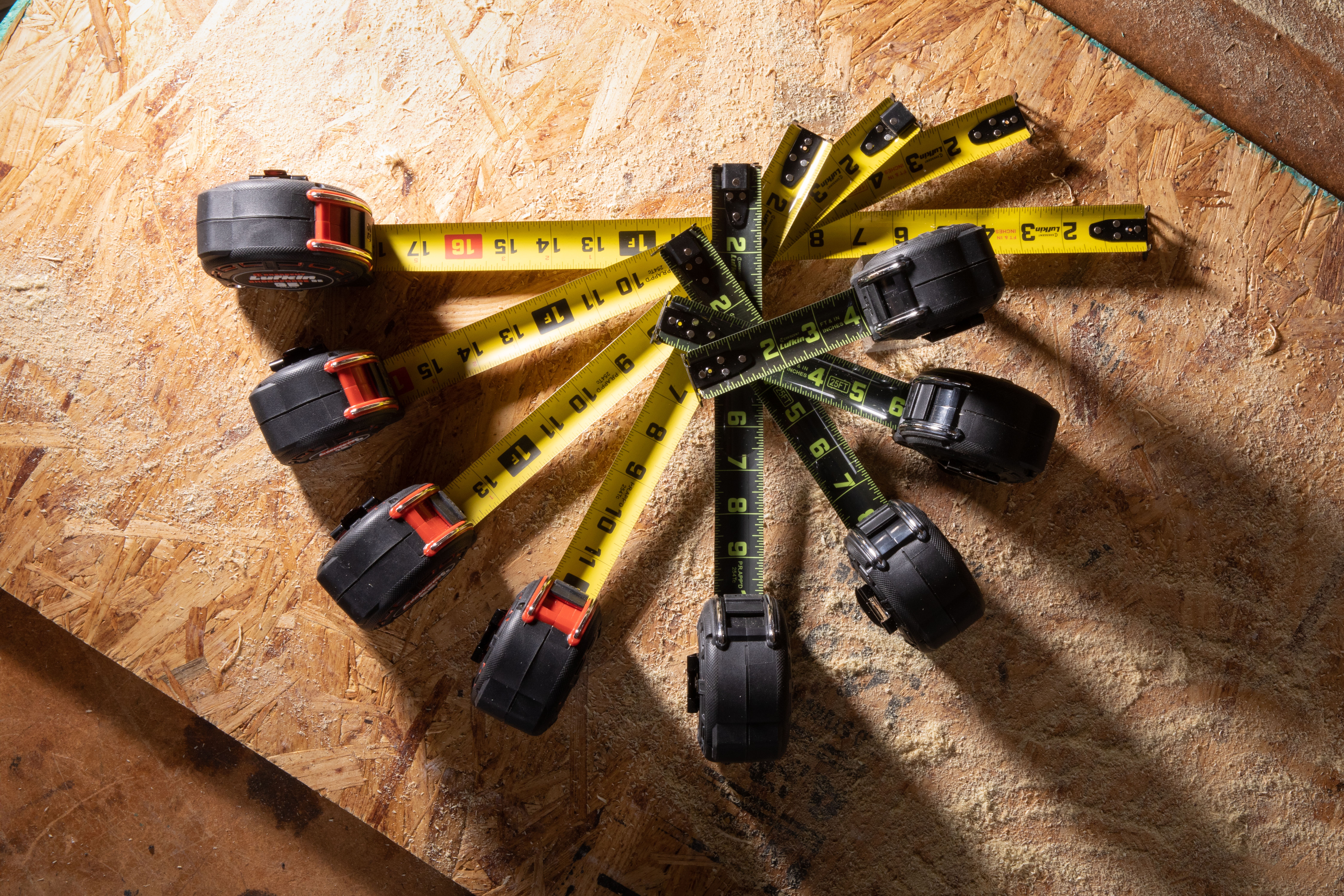 Our Shockforce G2 and Shockforce G2 Nite Eye measuring tapes have wider, thicker blades for a full 17-foot reach. They feature a bolstered case and fastening points, plus dual steel guardrails on both sides on the lock button - all for superior impact protection. They've been 120-foot drop tested for extreme durability so, they're not just the best performing tapes we've ever made...they're also the toughest.